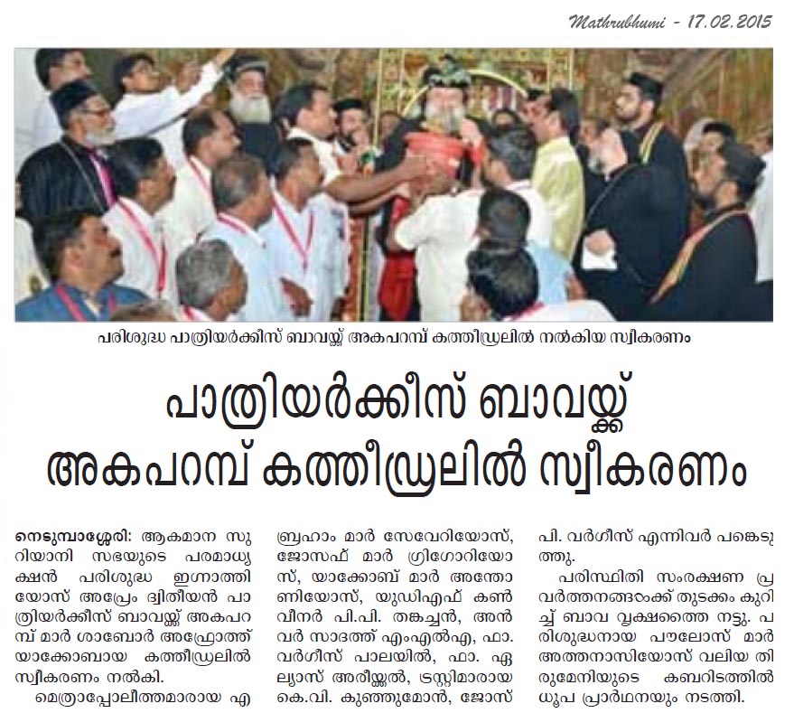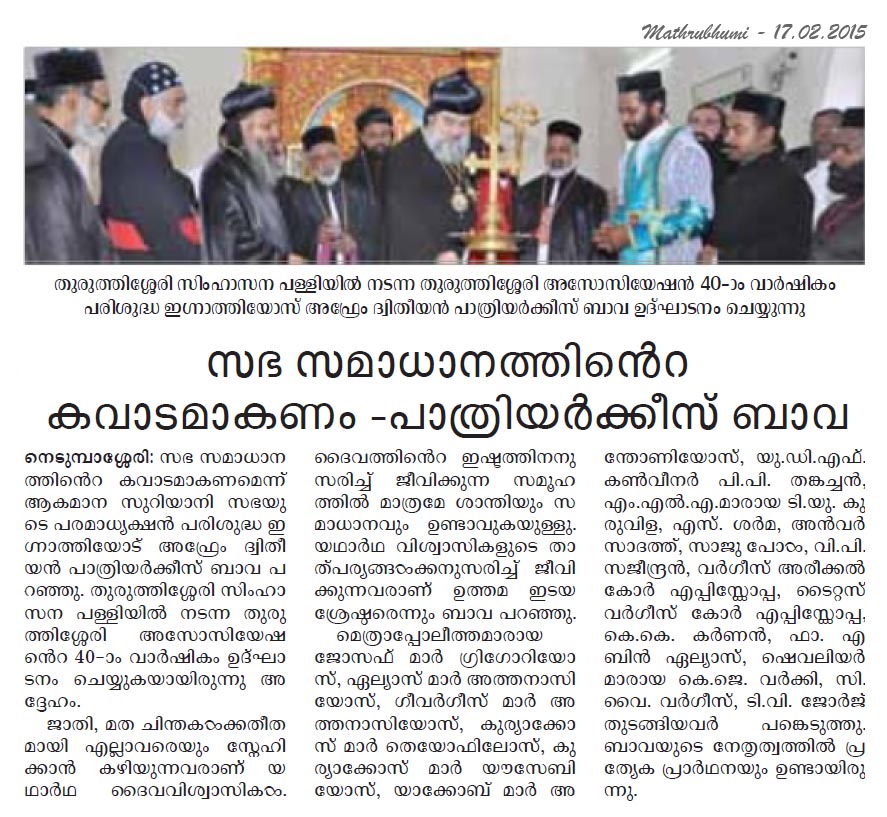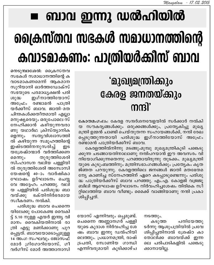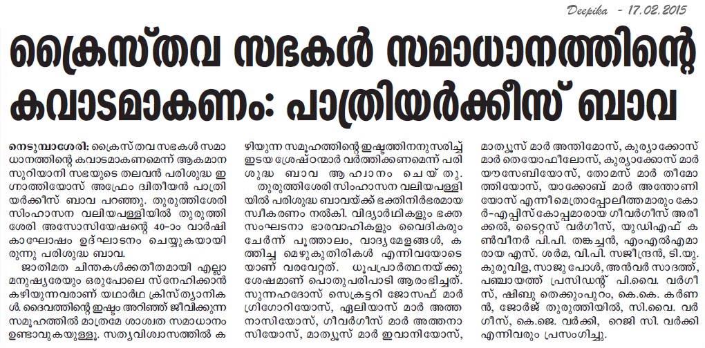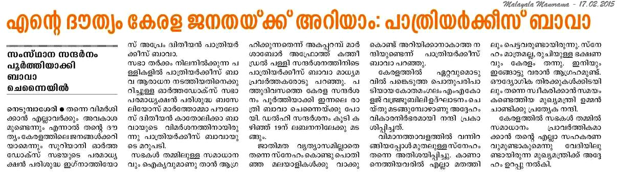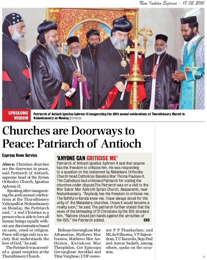 Internet Source:  http://www.newindianexpress.com/states/kerala/Churches-are-Doorways-to-Peace-Patriarch-of-Antioch/2015/02/17/article2672222.ece