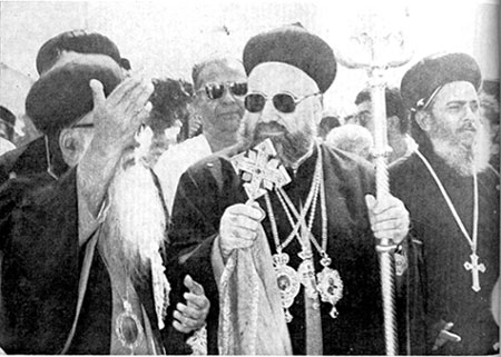 His Beatitude the Catholicos Mor Baselios Paulose II, Late P.E.Thomas Palampadom (Trustee), and Mor Dionysius Thomas (current Catholicos Mor Baselios Thomas I), during the reception of His Holiness the Patriarch at the Cochin Airport on Feb 7, 1982