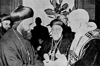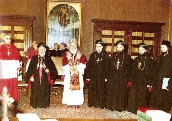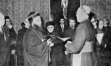 Mor Severios Zakka, Patriarch Moran Mor Yakub III and Pope Paul VI in conversation at Vatican