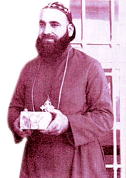 Mor Severious Zakka with the Holy Relics of St.Thomas which he rediscovered in1964 from the church at Mosul, Iraq |
