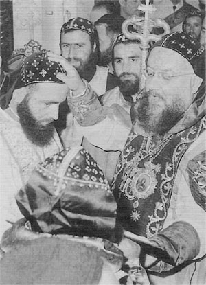 Rabban Zakka Iwas being consecrated Metropolitan by Patriarch Mor Yakub III in 1963