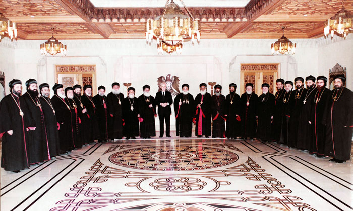 His Holiness and the Metropolitans of the Church with the Hafez al-Assad, the former Syrian President - 1997