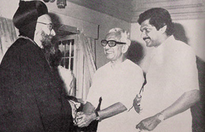 It was on February 3rd 1982, His Holiness the Patriarch of Antioch and all the East, Moran Mor Ignatius Zakka I Iwas reached Bombay, which marked the beginning of his first Apostolic visit to India. He later spend almost two months in Malankara, accepting the warm wishes of the children of India. His Holiness was received by the State Governments as their special guest and were provided with all the facilities. Irrespective of caste, creed and denomination, people thronged in large numbers, wherever he visited. When he reached at Cochin on 7th February he was accorded a royal and loyal reception by a crowd, nearly 300000, including the ministers and high dignitaries. Unprecedented in the history of the Malankara Church, the Patriarch had warm receptions by the Roman Catholic Church, The Mar Thoma Syrian Church, the Church of South India, the Church of the East, the Independent Church of Thoziyoor and the Church of North India. It has to be recorded that our Hindu and Muslim brother too accorded him a warm and memorable welcome.