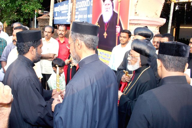 Metropolitans, priests, Deacons and others in front of the Kunnamkulam Arthat simhasana church awaiting the arrival of pilgrims