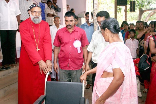 Tricycles being donated to handicapped persons as part of the annual feast day celebration of St. Sleeba Mor Osthathios Bava at the Arthat St. Mary's Simhasana Church, Kunnamkulam - Sunday, March 22, 2009