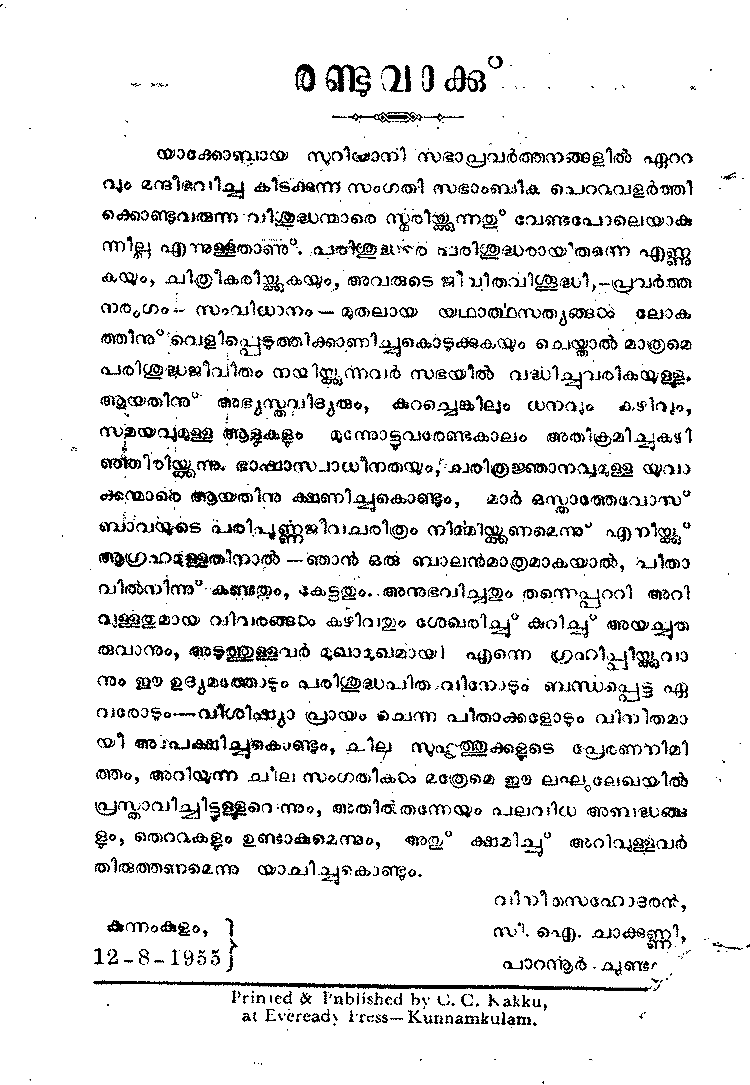 by C. I. Chakkunni